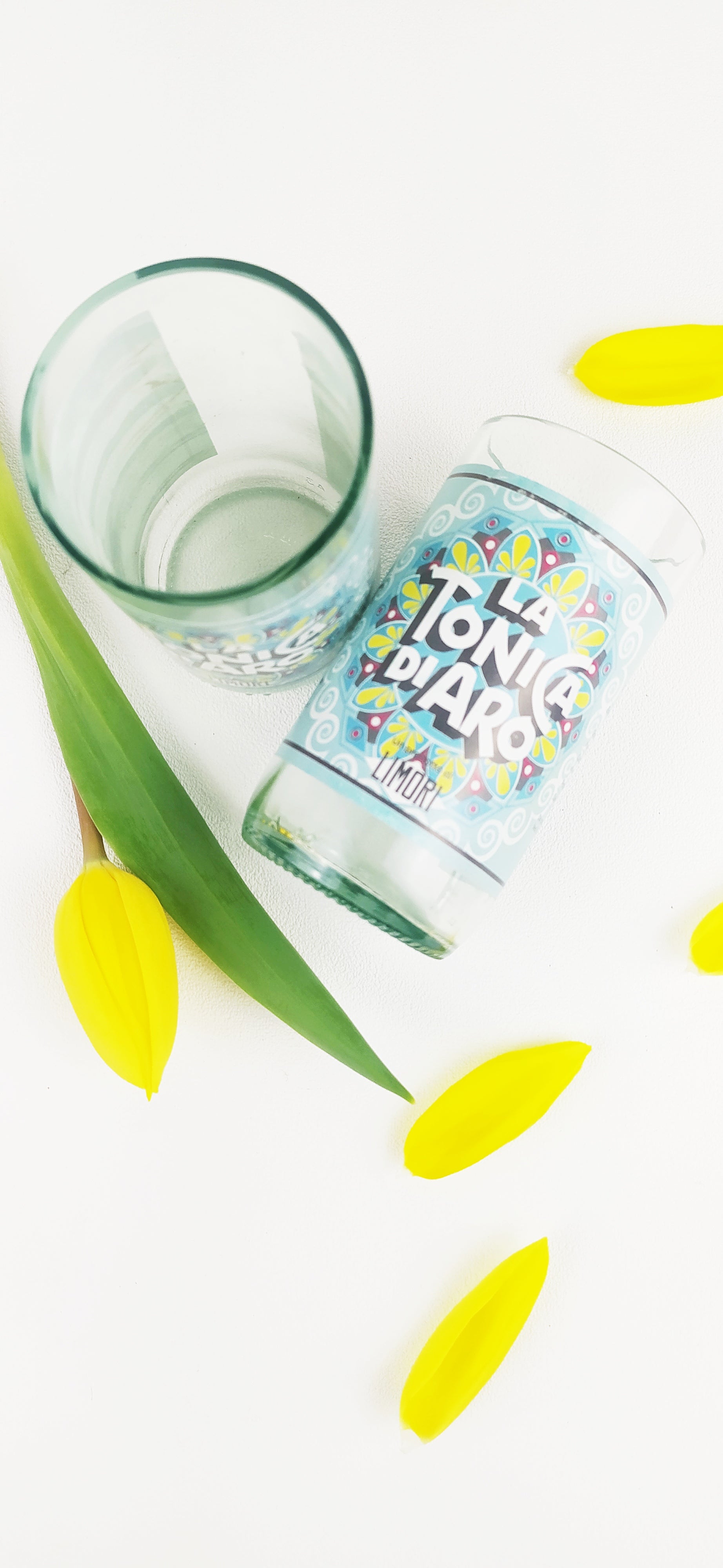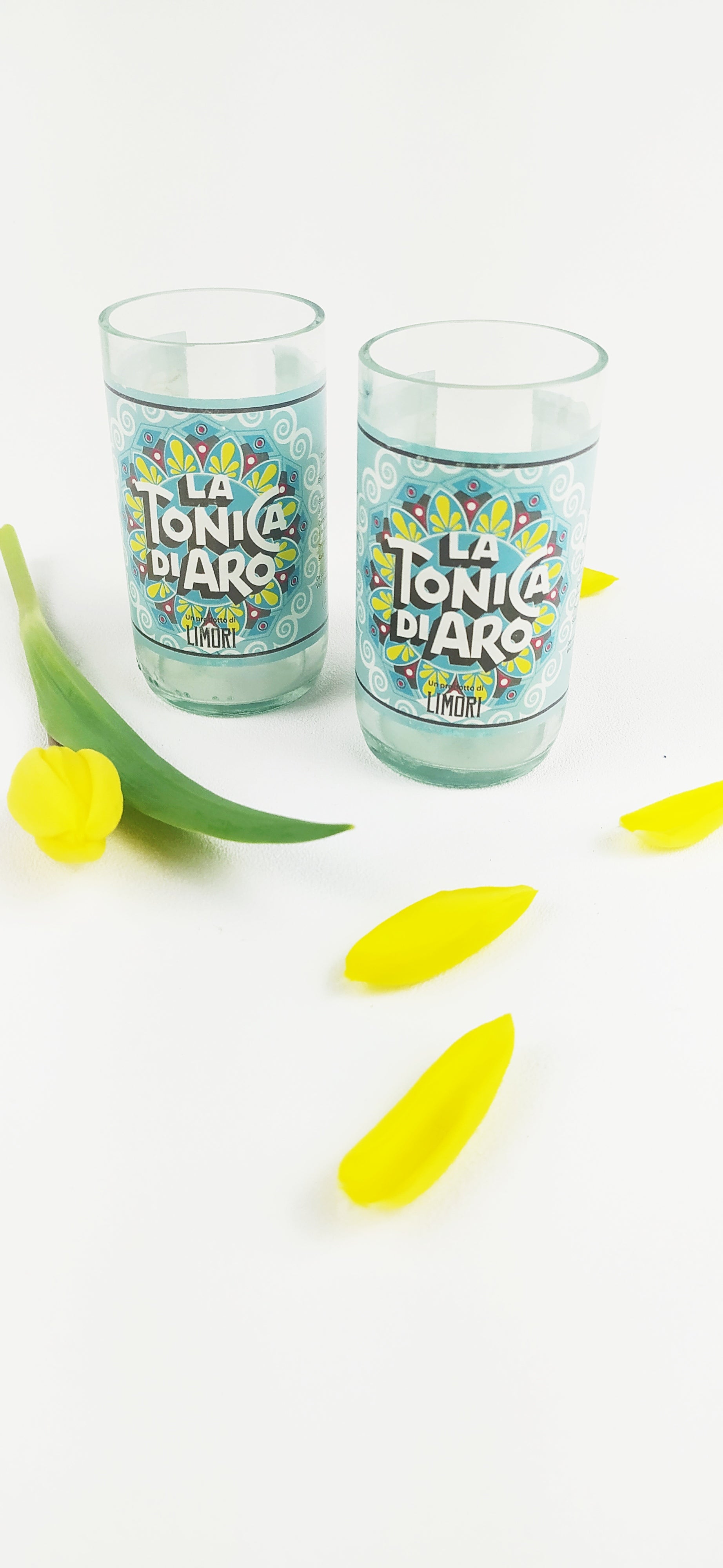 Bicchierini ricavati da bottigliette della Tonica di Aro