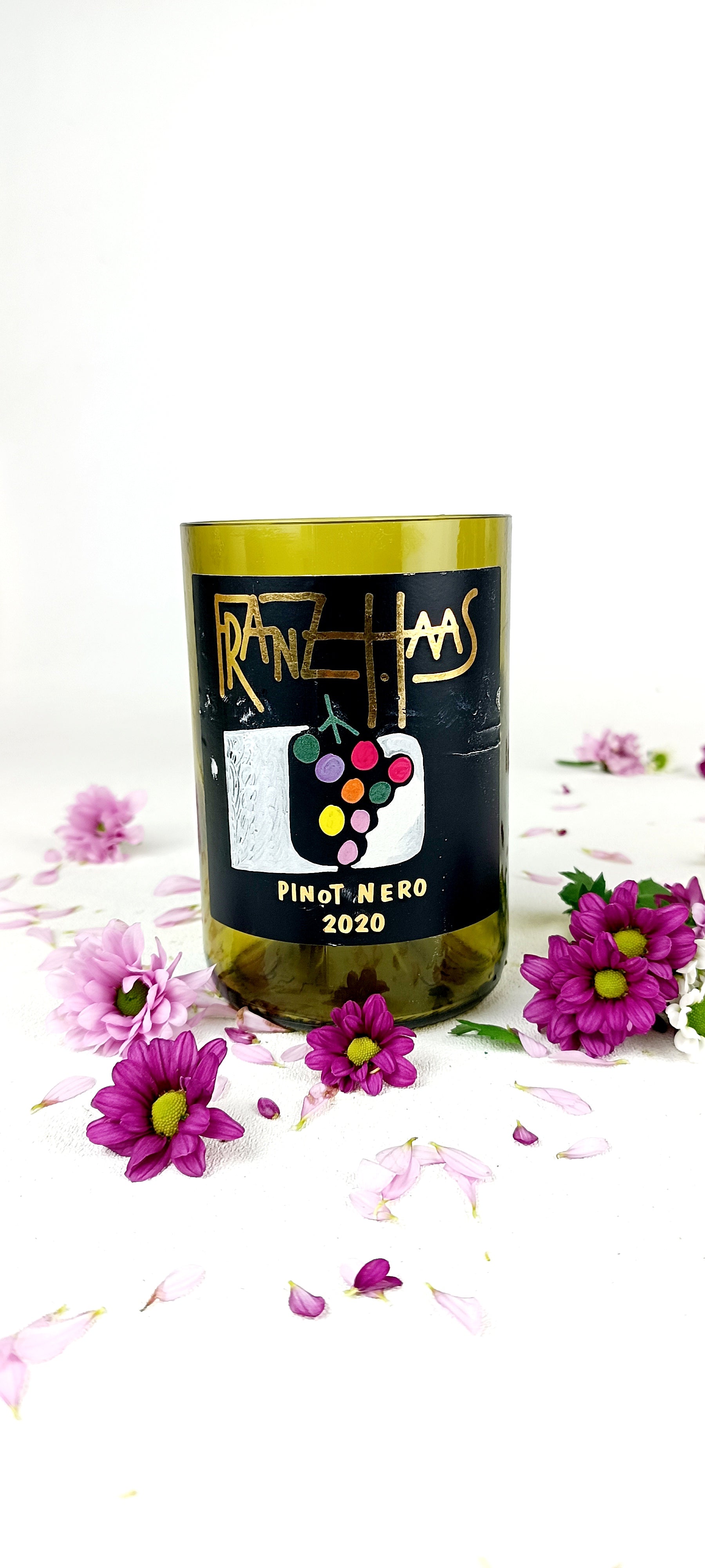 La bottiglie vuota una volta selezionata è stata accuratamente lavata, tagliata, levigata e lucidata con macchinari professionali per garantire l'assenza di bordi taglienti.
