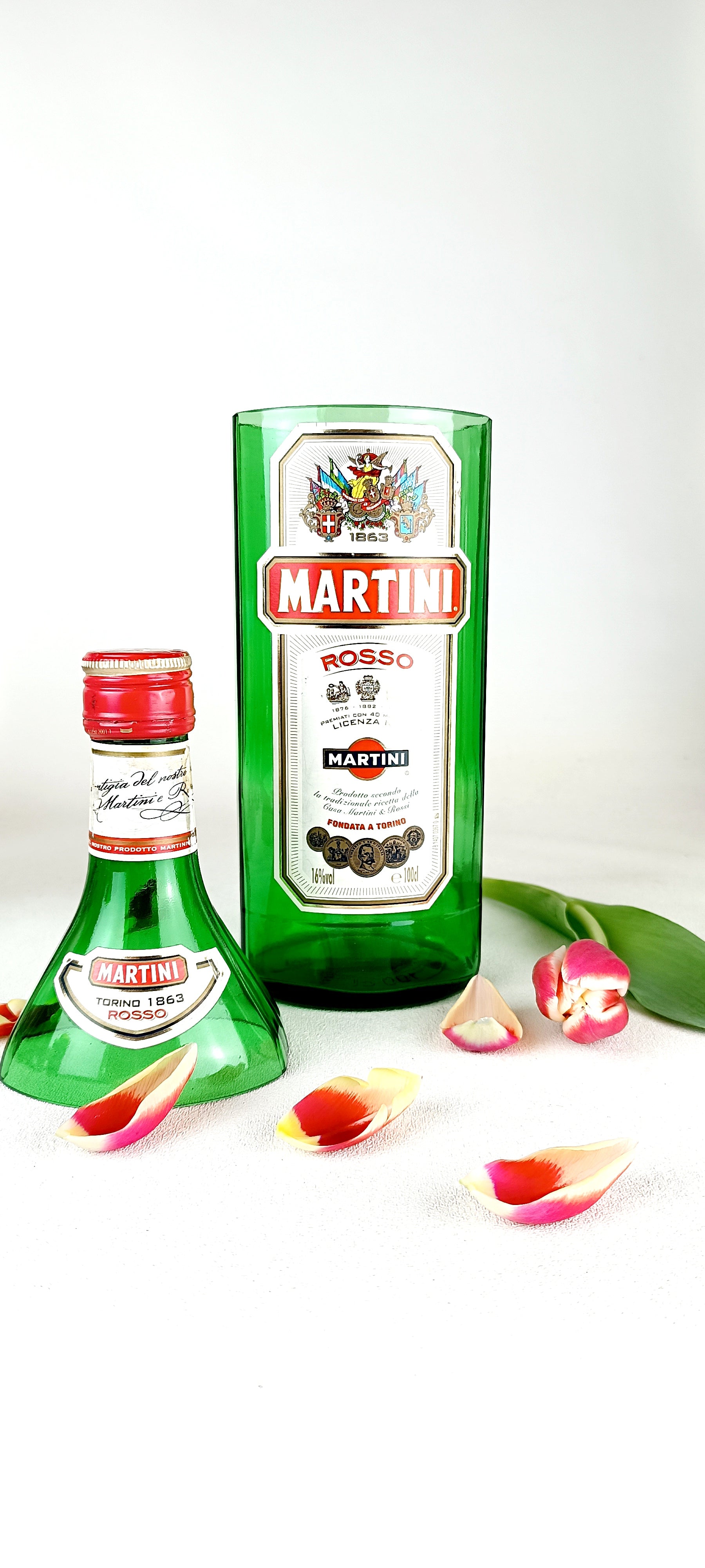 La bottiglie vuota una volta selezionata è stata accuratamente lavata, tagliata, levigata e lucidata con macchinari professionali per garantire l'assenza di bordi taglienti.