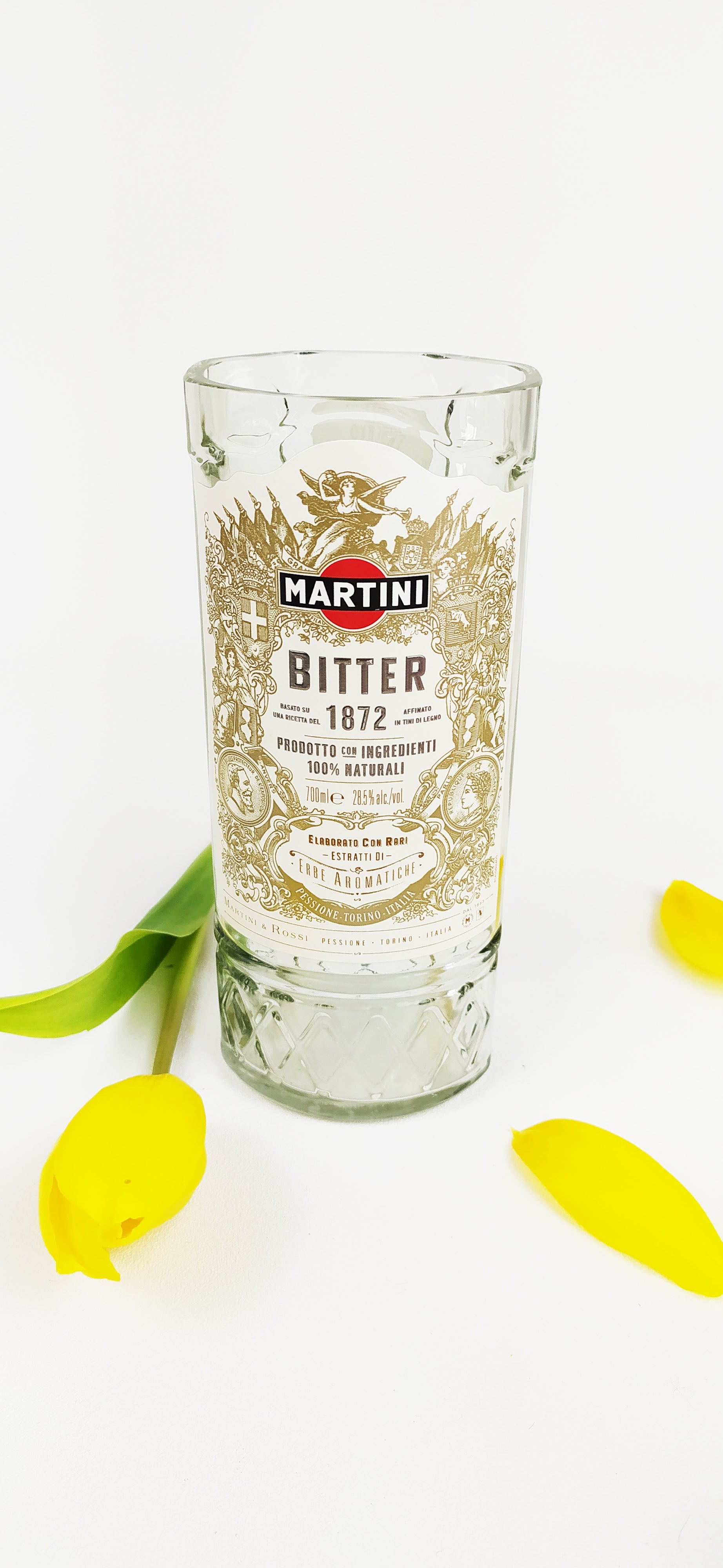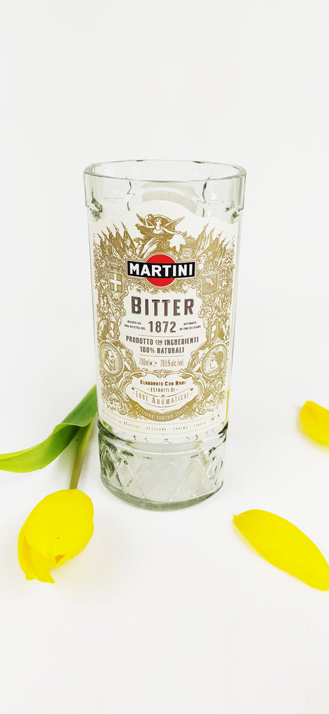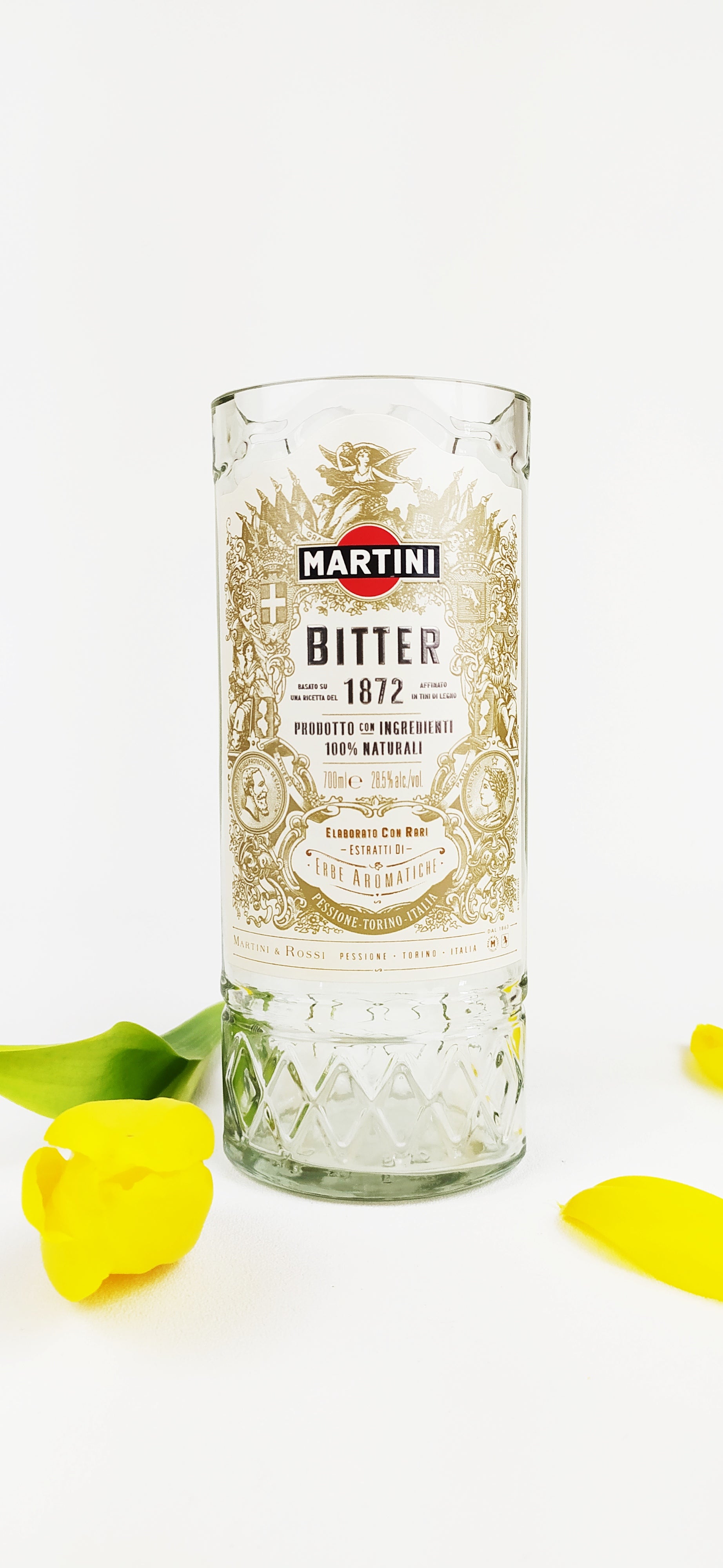 La bottiglie vuota una volta selezionata è stata accuratamente lavata, tagliata, levigata e lucidata con macchinari professionali per garantire l'assenza di bordi taglienti.