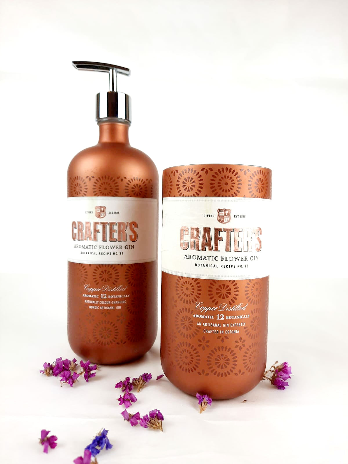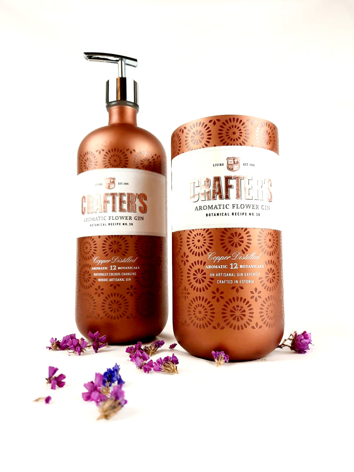 Portasapone e portaspazzolino realizzati con bottiglia di Gin Crafter's da 700ml.