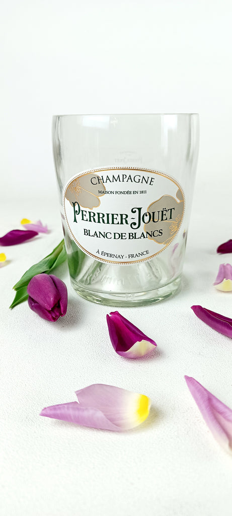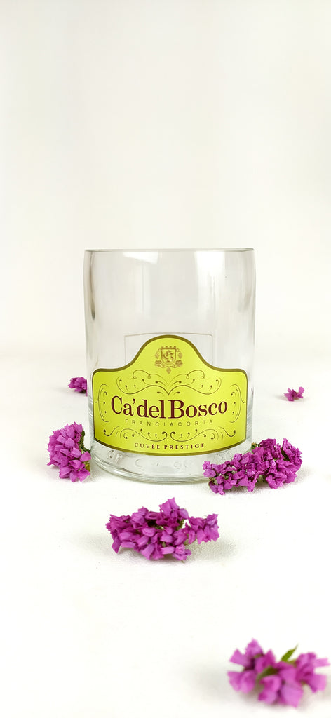 The empty bottle is cut and polished to ensure no sharp edges and then filled by hand with our natural soy wax.