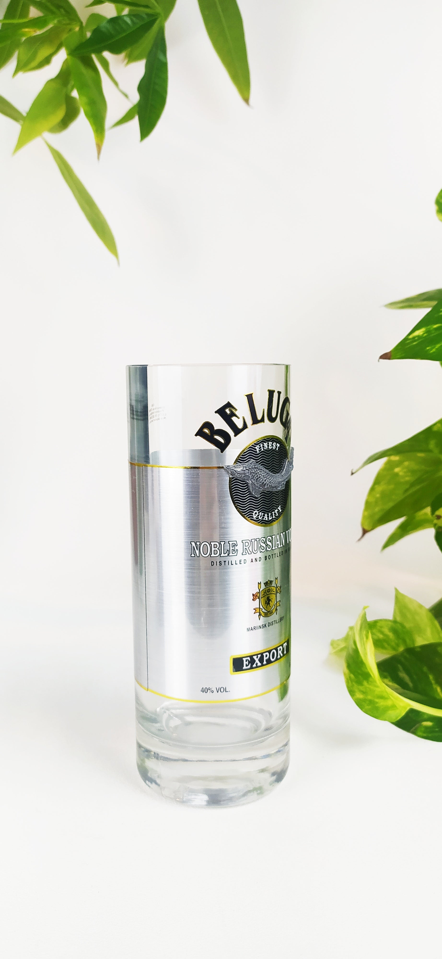 La bottiglie vuota una volta selezionata è stata accuratamente lavata, tagliata, levigata e lucidata con macchinari professionali per garantire l'assenza di bordi taglienti.