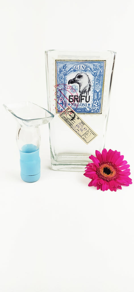 La bottiglie vuota una volta selezionata è stata accuratamente lavata, tagliata, levigata e lucidata con macchinari professionali per garantire l'assenza di bordi taglienti.