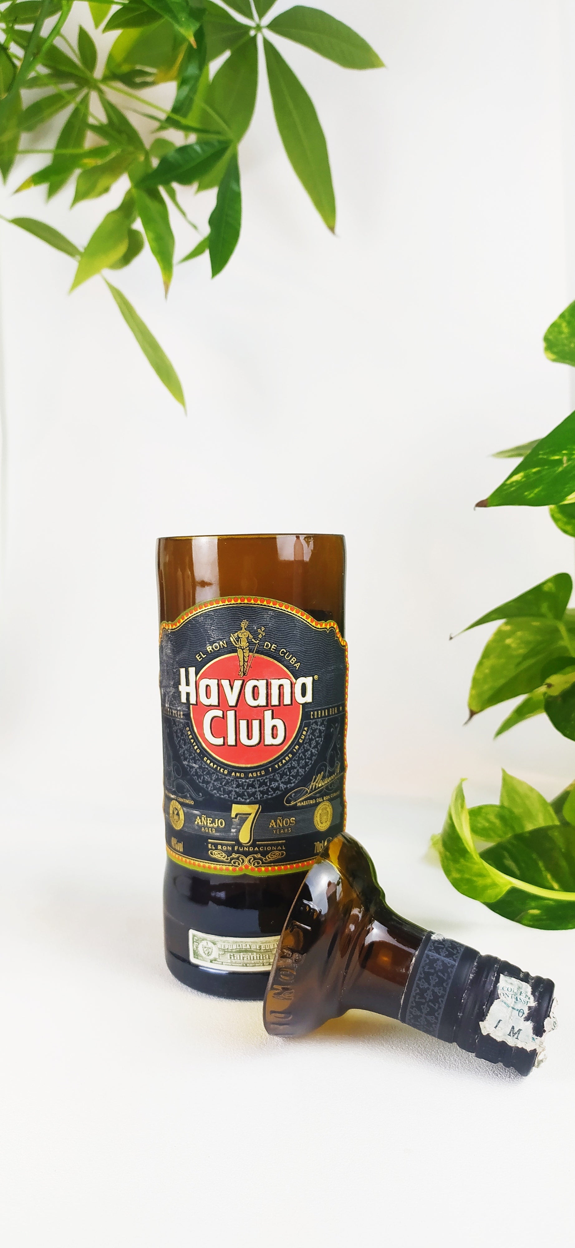 La bottiglie vuota una volta selezionata è stata accuratamente lavata, tagliata, levigata e lucidata con macchinari professionali per garantire l'assenza di bordi taglienti.