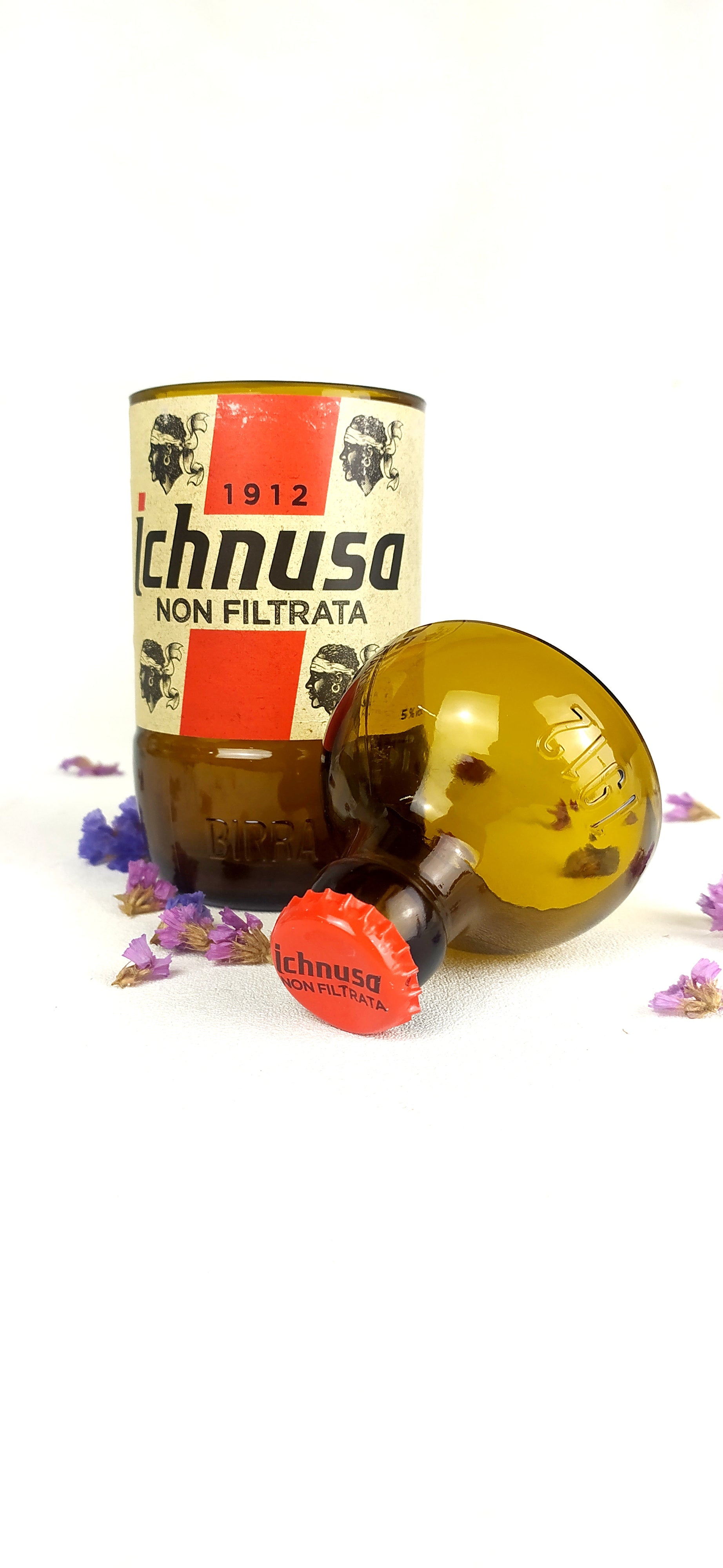 La bottiglie vuota una volta selezionata è stata accuratamente lavata, tagliata, levigata e lucidata con macchinari professionali per garantire l'assenza di bordi taglienti.