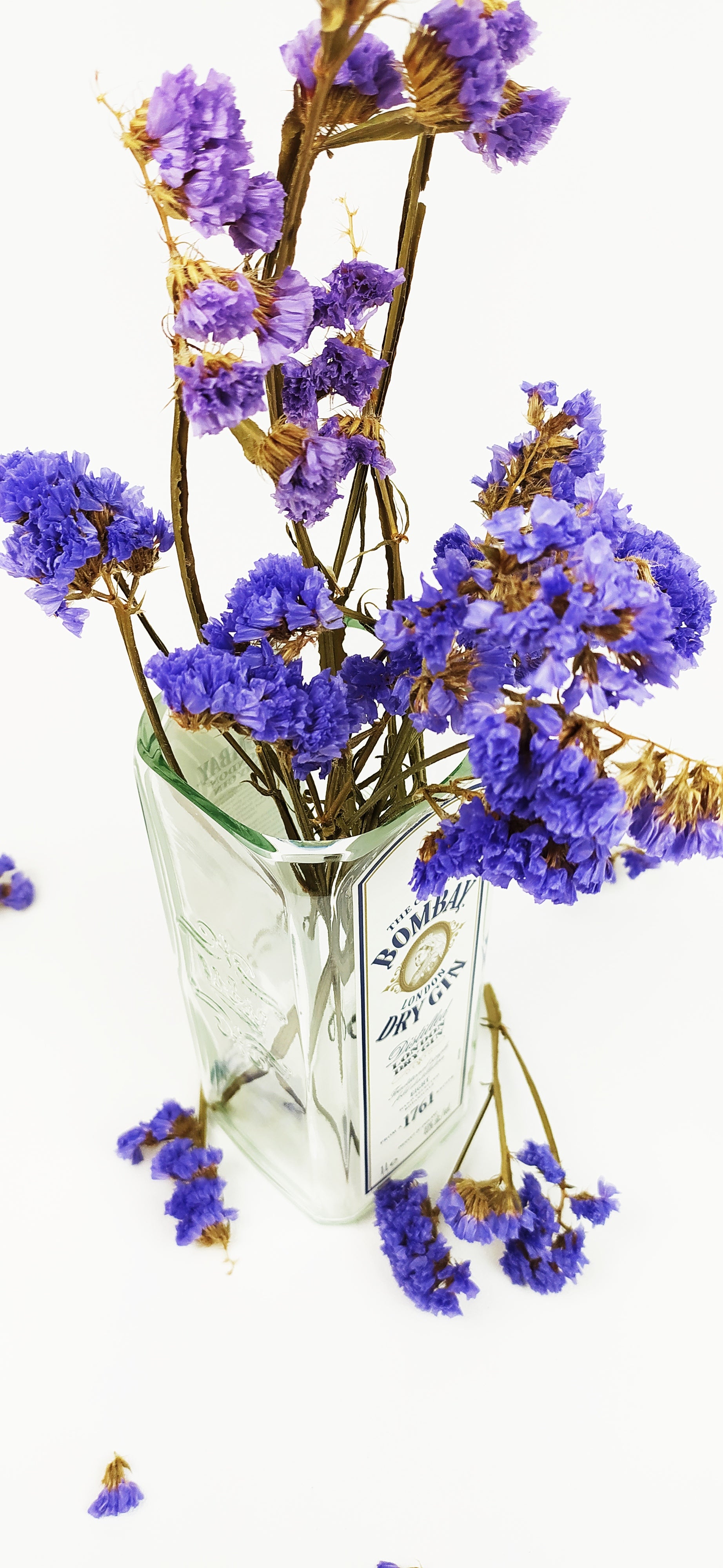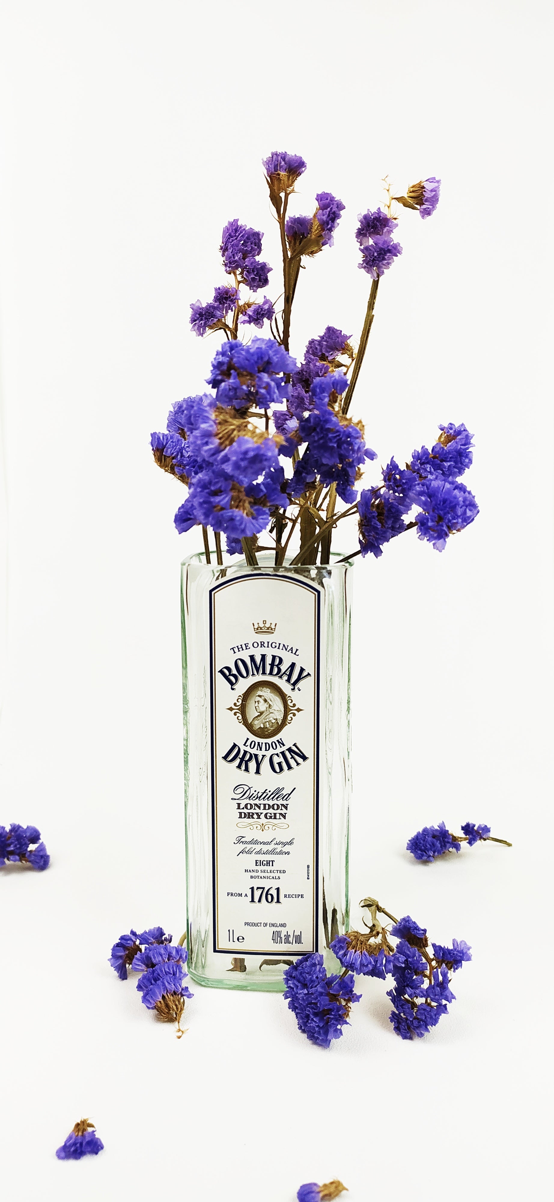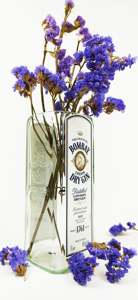 Vaso da fiori realizzato con bottiglia di Gin Bombay.