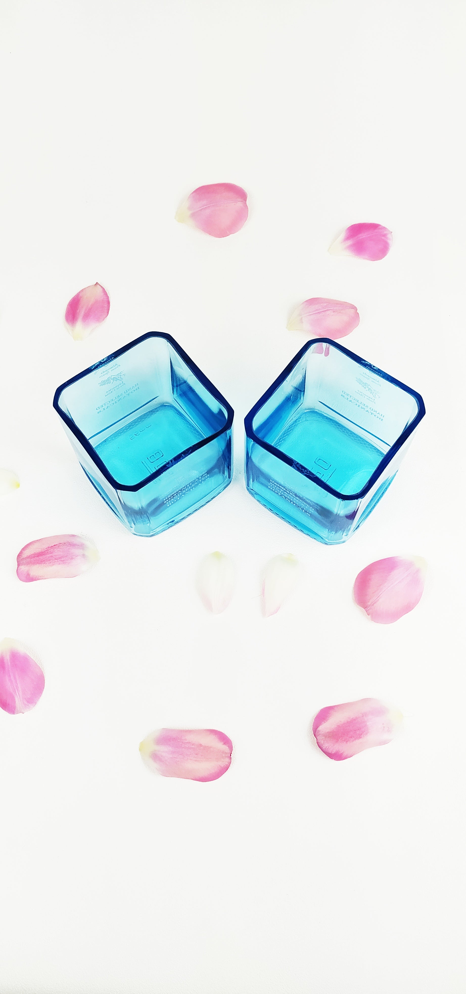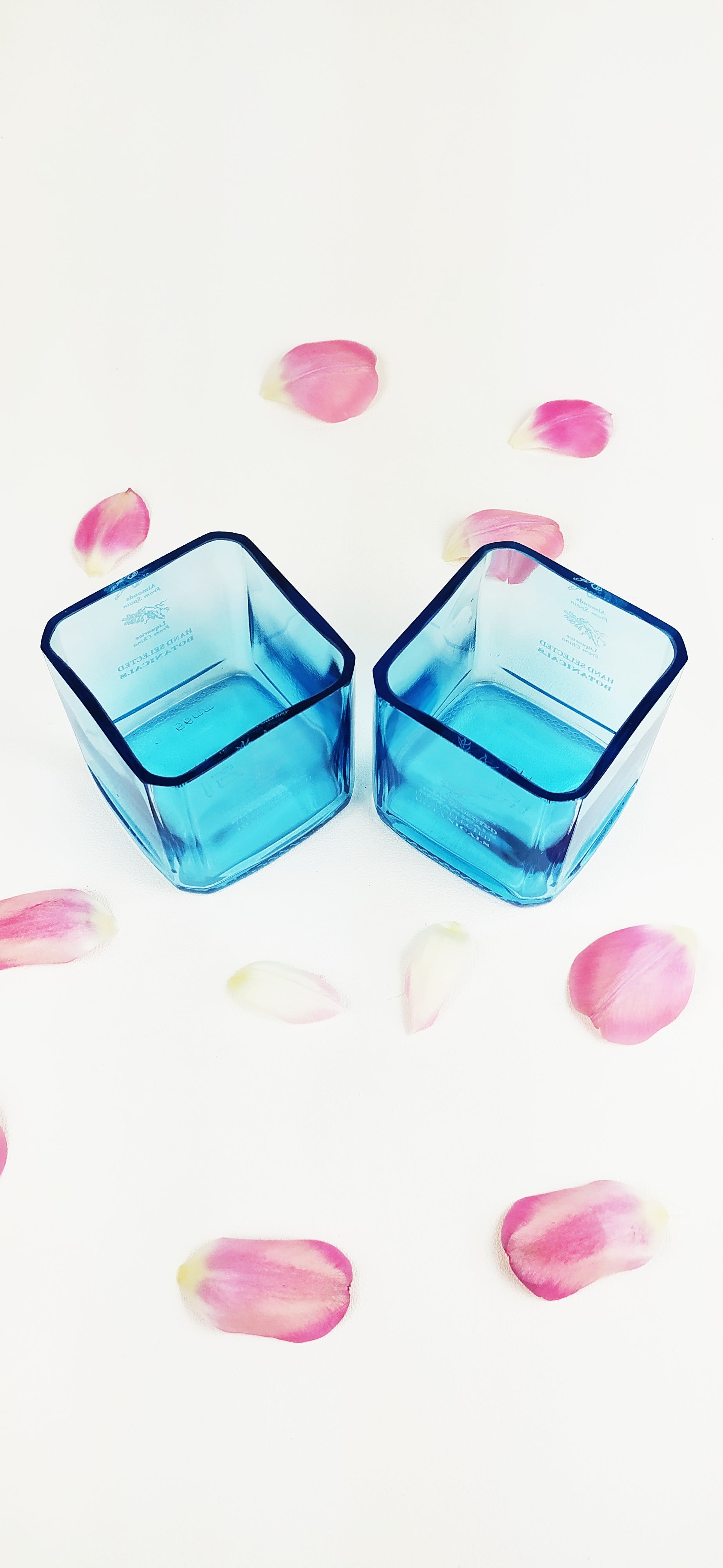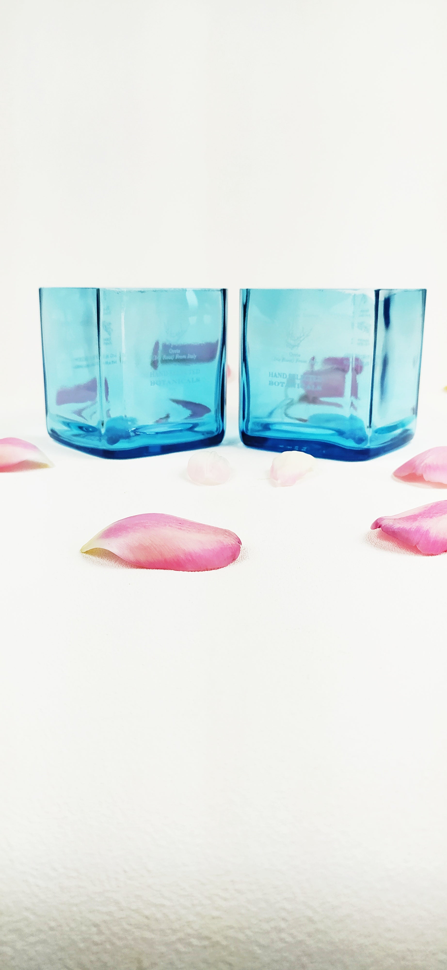 Bicchieri realizzati da bottiglie di Bombay Gin.